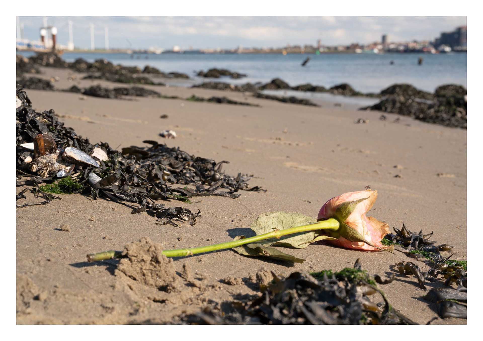 What washes up on Dutch beaches is left behind, forgotten, or lost along the way. Pieces of rope, plastic, wood, and even flowers lie scattered across the sand, shaped by wind, water and time. Freed from their original function, these objects take on new meaning. A quiet beauty lies within their wear, discoloration, and unexpected shapes. This portfolio attentively examines what is normally passed by and shows how, through distance and observation, waste is transformed into something fragile and aesthetic - a reflection of our presence in the landscape.